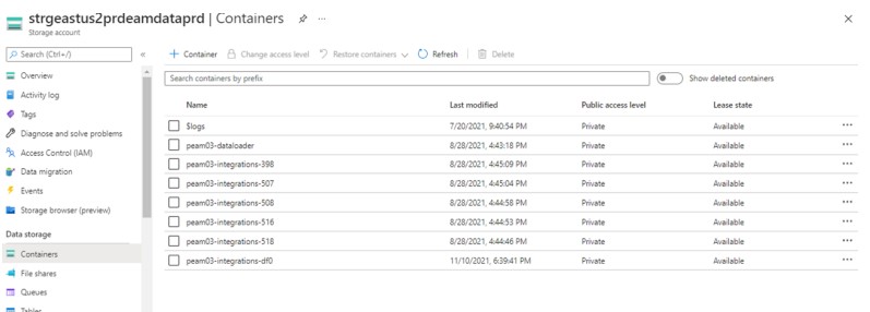 For the production environment, the storage account name is strgeastus2prdeamdataprd.