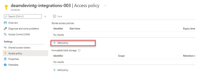 After creating the container, you have to add an access policy before sharing it with the customers. This helps users to securely access the storage containers. To add an access policy to the containers, perform the following steps: